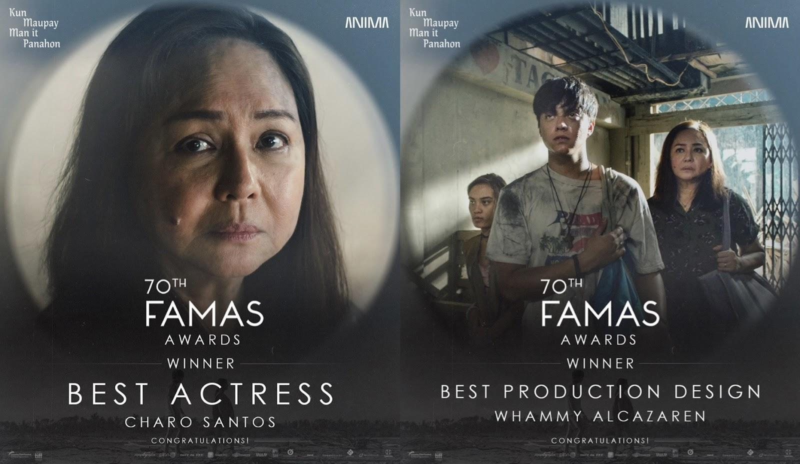 CHARO SANTOS of ANIMA’s ‘Kun Maupay Man It Panahon’ (Whether The Weather is Fine) wins best actress at the 70th FAMAS Awards.